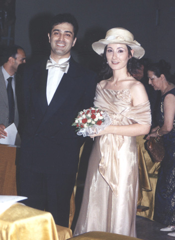 congiunzione matrimoniale con un sorriso da beota sulla faccia.